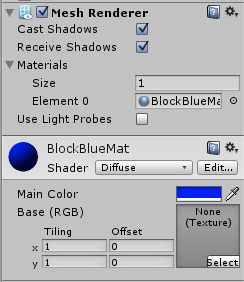 3. 셰이더(Shader)는 머티리얼에 적용할 텍스처를 렌더링할 때 표면의 재질감을 표현하는 방법을 결정함. 가장 흔한 셰이더는 Normal map이 있음. Normal map는 표면의 굴곡을 표한하기 위한 텍스처의 일종. (셰이더의 normal map를 사용하기 위해선 머티리얼의 Inspector의 Shader에서 Bumped Diffuse를 선택하면 Normal map가 보임.)